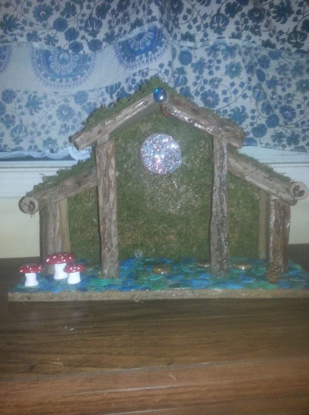 Last year my Sister and I ventured out one afternoon together to grab a coffee and drive around scoping free piles we came across something that caught my eye – a vision… lol I saw this nativity scene I grabbed cause what I saw was transformation a fairy house!! My Sister looked at me a little oddly but is unforturately all too familiar with my hair brained shenannigans she dropped me off at home nativity scene in tow and I wasted no time getting to work I spent 3 hours making this fairy home I ended up giving to a friend as a gift I hope she is enjoying it I kind of regret giving it away 😦 oh well onto the next hunt…